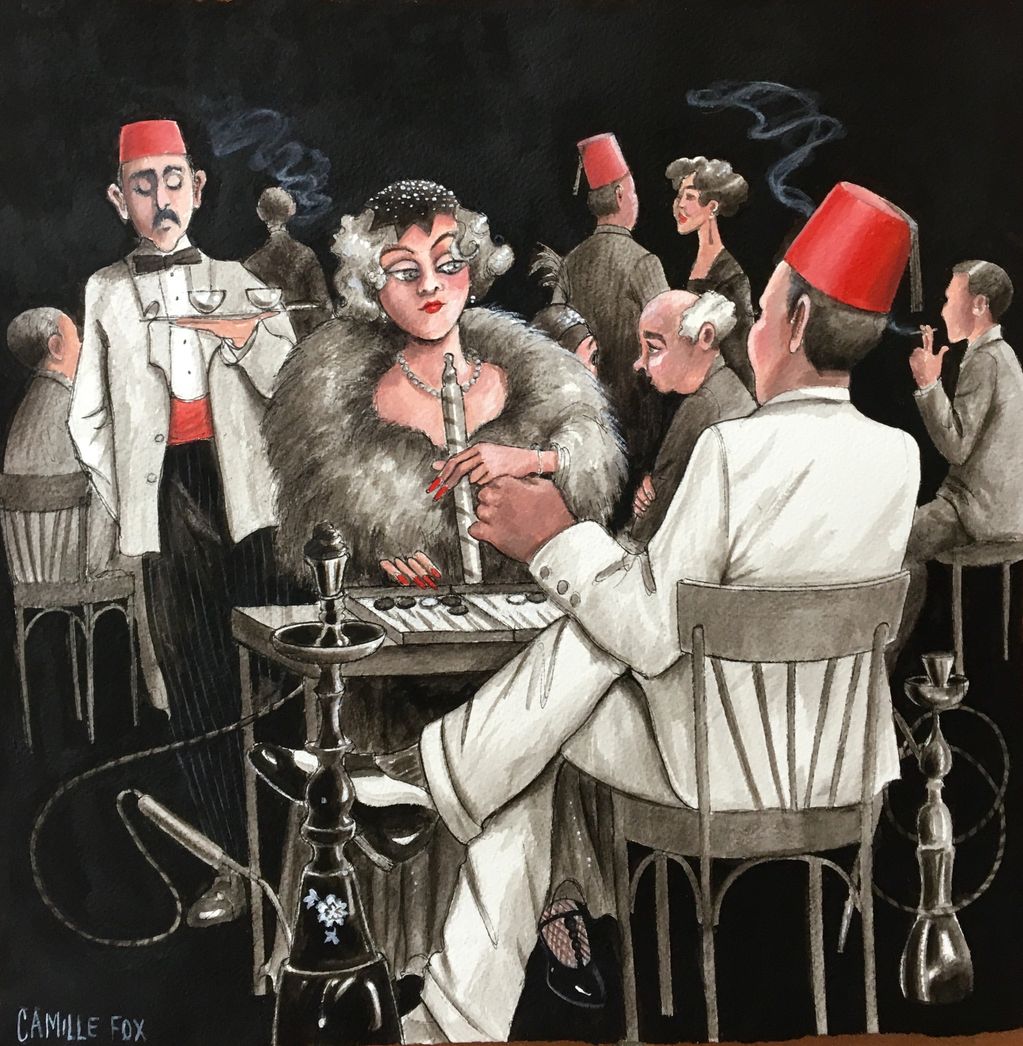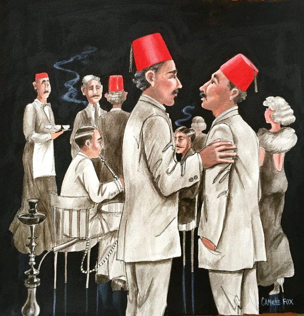 This series depicts events that occurred in everyday life among the Bourgeoisie in Egypt.... the Halcyon Days of those vibrant cosmopolitan communities when people of different religions - Christians, Muslims and Jews - celebrated each other's festivals and attended each other's weddings, played cards, enjoyed afternoon tea on sunny terraces in the winters of Cairo, sailed in Alexandria's harbour in summer, danced the night away at the frequent balls, and fell in love.