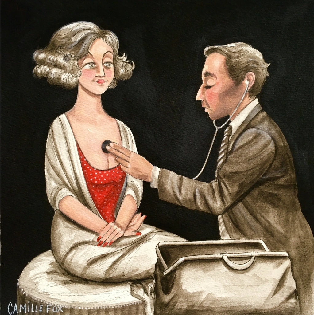 "Please enjoy my series of mixed media paintings 'Halcyon Days', drawn and painted on acid free archival paper with a limited palette, and floated behind glass in a museum quality white frame for sale.