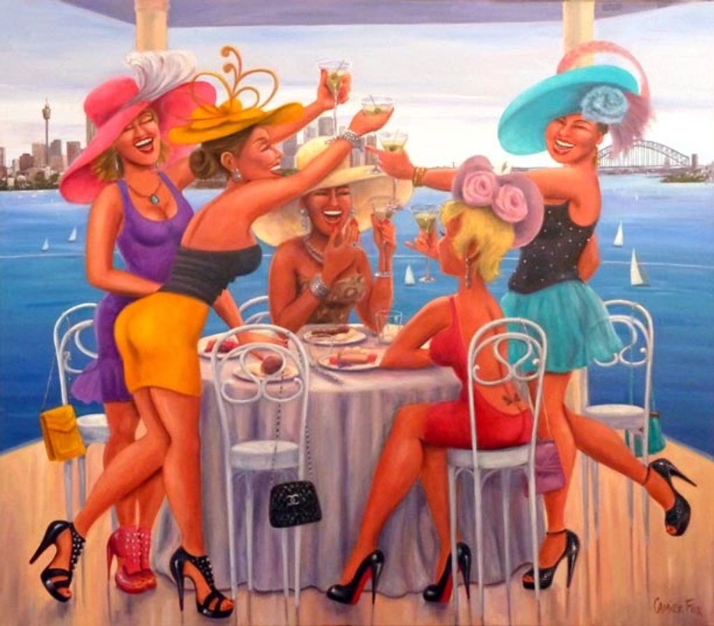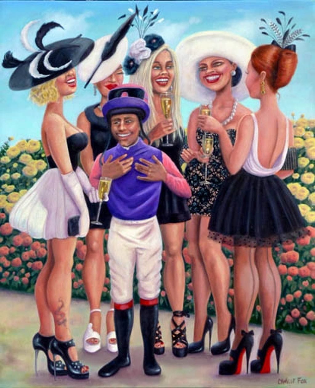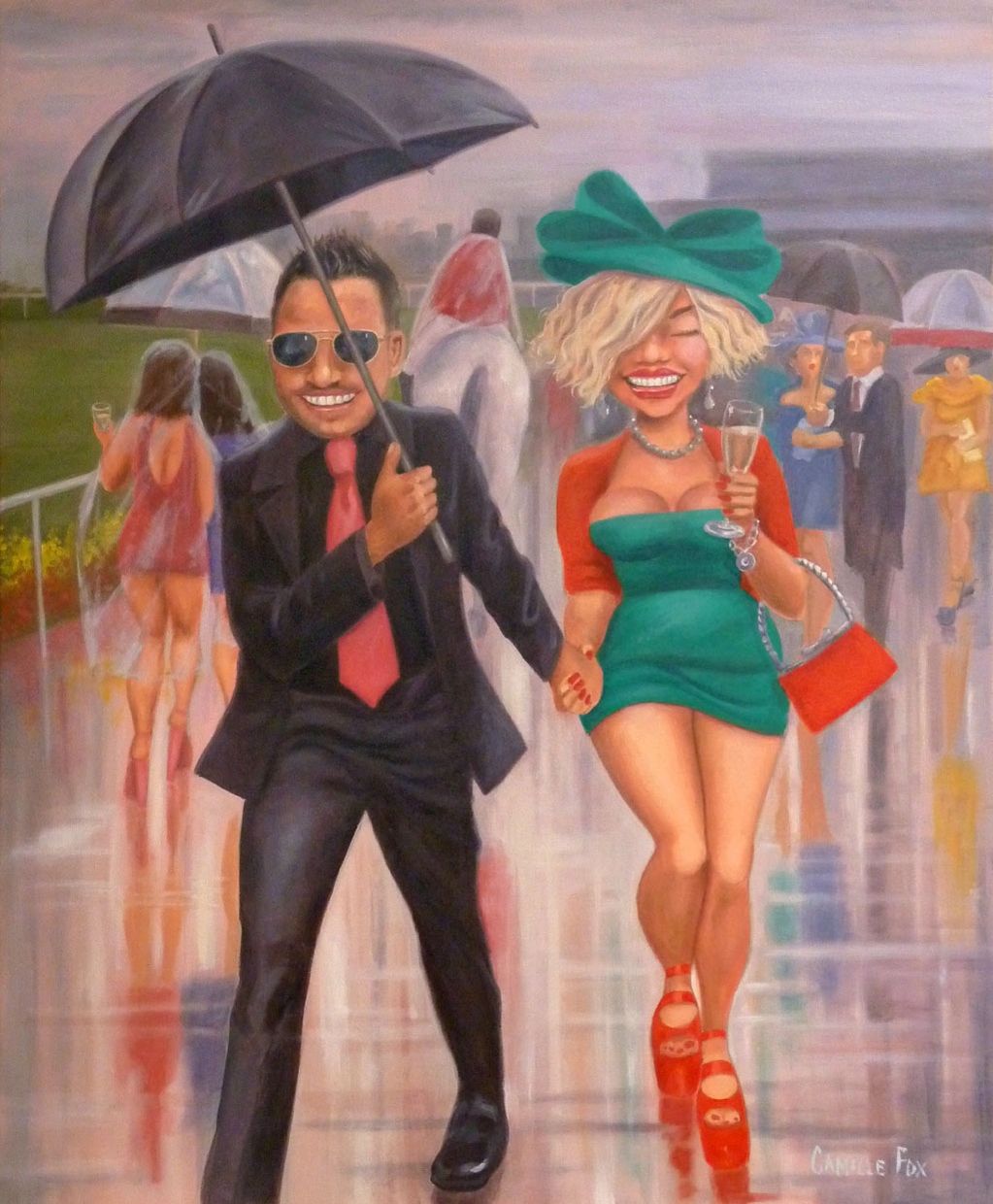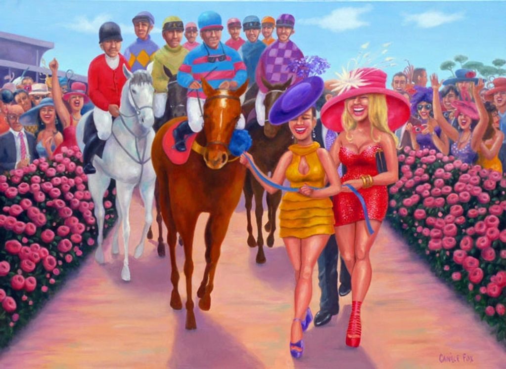 'Well Heeled' is a series of oil paintings that celebrates horse racing and provides a wonderful opportunity to share in the merriment of a day at the races; to be thrilled or to laugh over cocktails with friends.
